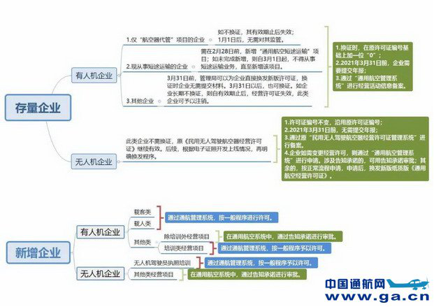 A6:此類情形適用《通用航空經(jīng)營許可管理規(guī)定》有關(guān) 規(guī)定。企業(yè)需通過“通用航空管理系統(tǒng)”提出申請,按照申 領(lǐng)或變更通用航空經(jīng)營許可證的有關(guān)程序辦理。其中,存量 無人機企業(yè)在取得新版《通用航空經(jīng)營許可證》的同時,其 原持有的《民用無人駕駛航空器經(jīng)營許可證》自動失效(許可證編號參見 Q2/A2)。