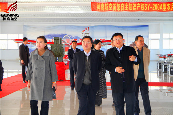 高海濤巡視員及工作組參觀了通遼市神鷹飛機制造在限公司。通遼市神鷹通用航空有限公司董事長邱志剛向檢查組詳細介紹了“SY-200”農(nóng)用飛機和植保無人機研發(fā)制造情況,匯報了公司當前和今后的發(fā)展目標和方向。期間,高海濤巡視員還親切地詢問了公司在發(fā)展建設中遇到的困難。