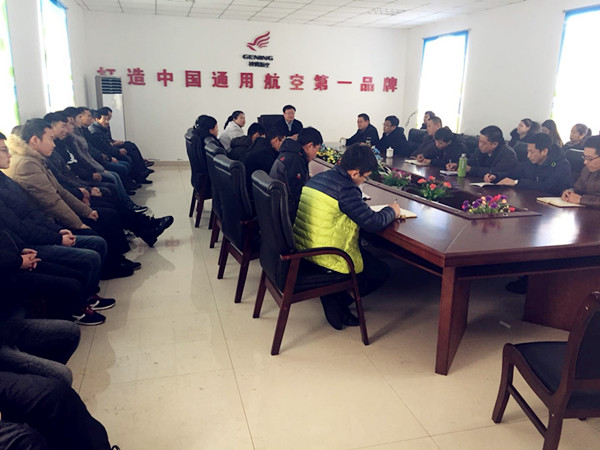 通遼市神鷹通用航空有限公司全體人員在飛機(jī)制造廠小會議室召開新年動員大會